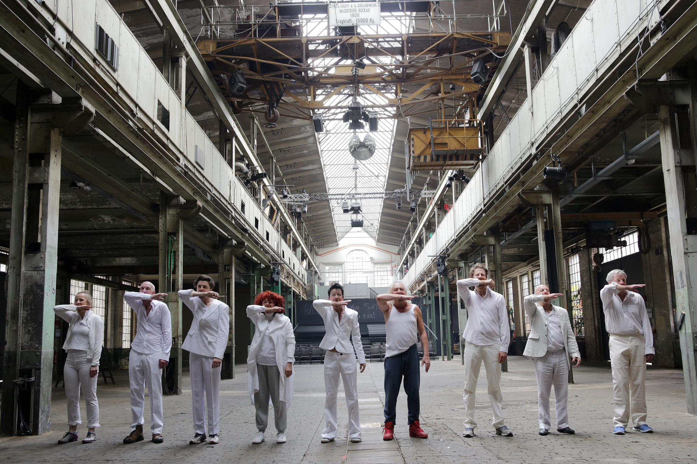With these two photo’s of the first dance rehearsals with our choreographer Heike Hennig from Leipzig, I proudly present the group of actors in the Naxoshalle,